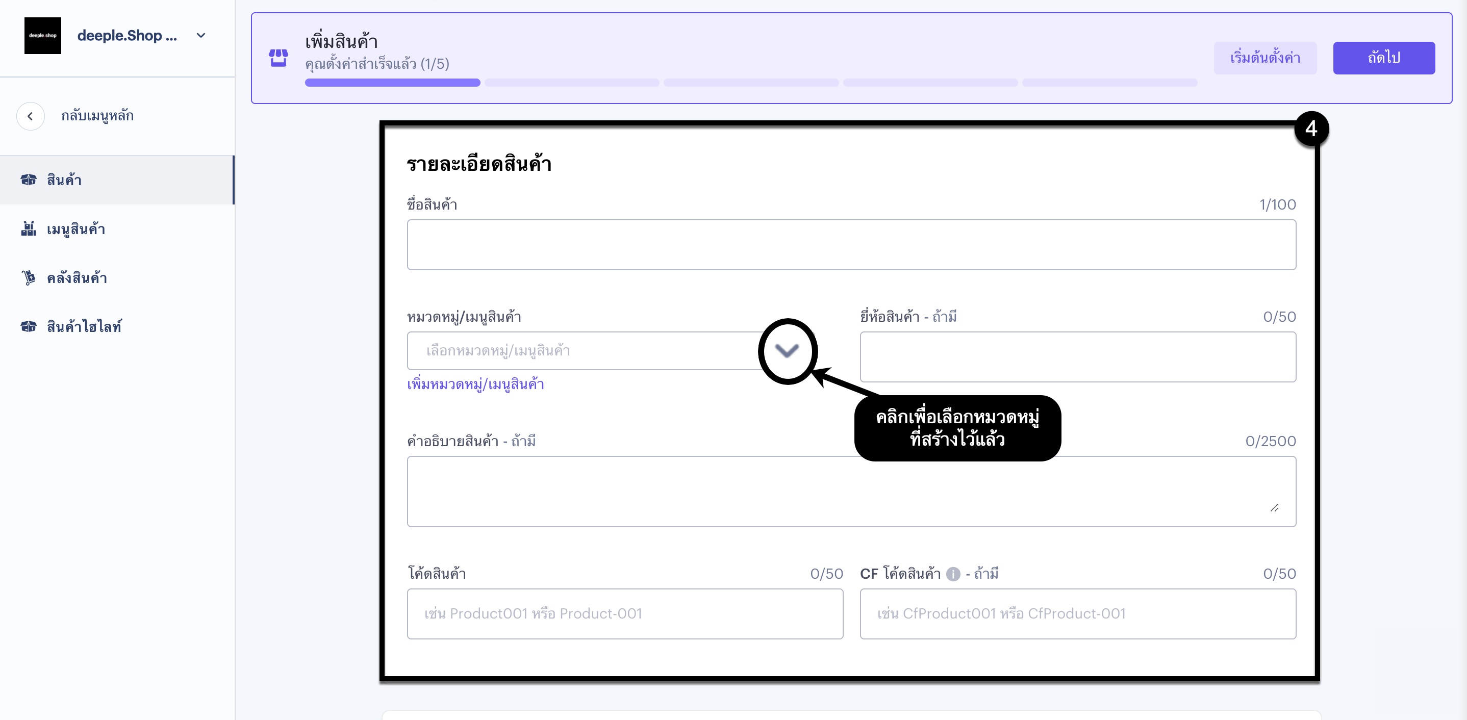 4. ตั้งค่ารายละเอียดสินค้าในแต่ละหัวข้อให้ครบถ้วนดังนี้